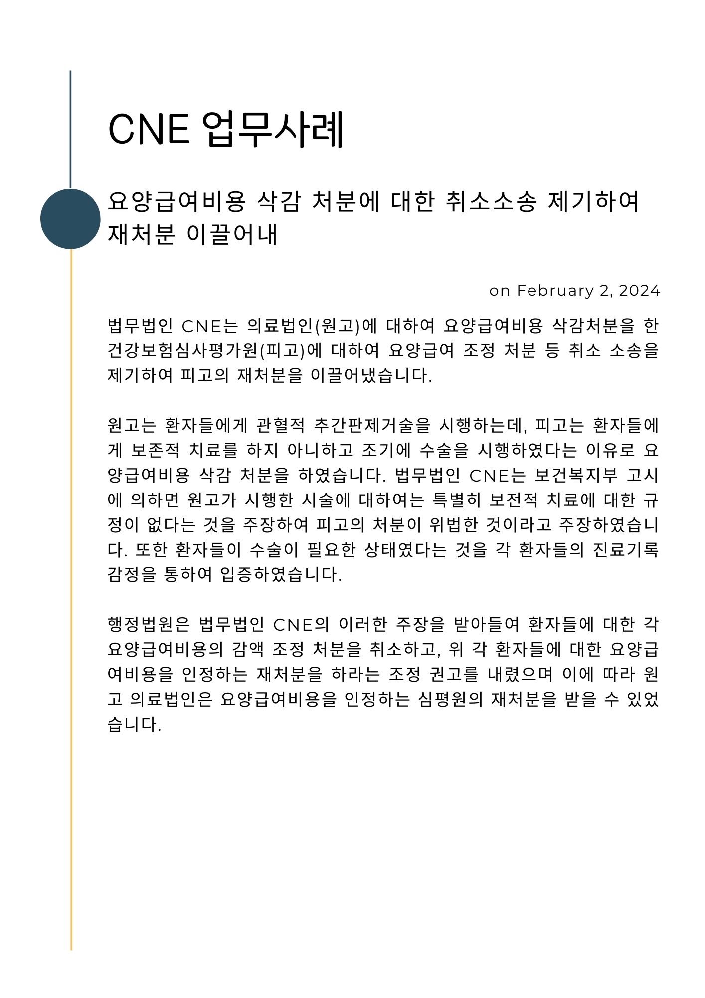[업무사례] 요양급여비용 삭감 처분에 대한 취소소송 제기하여 재처분 이끌어내