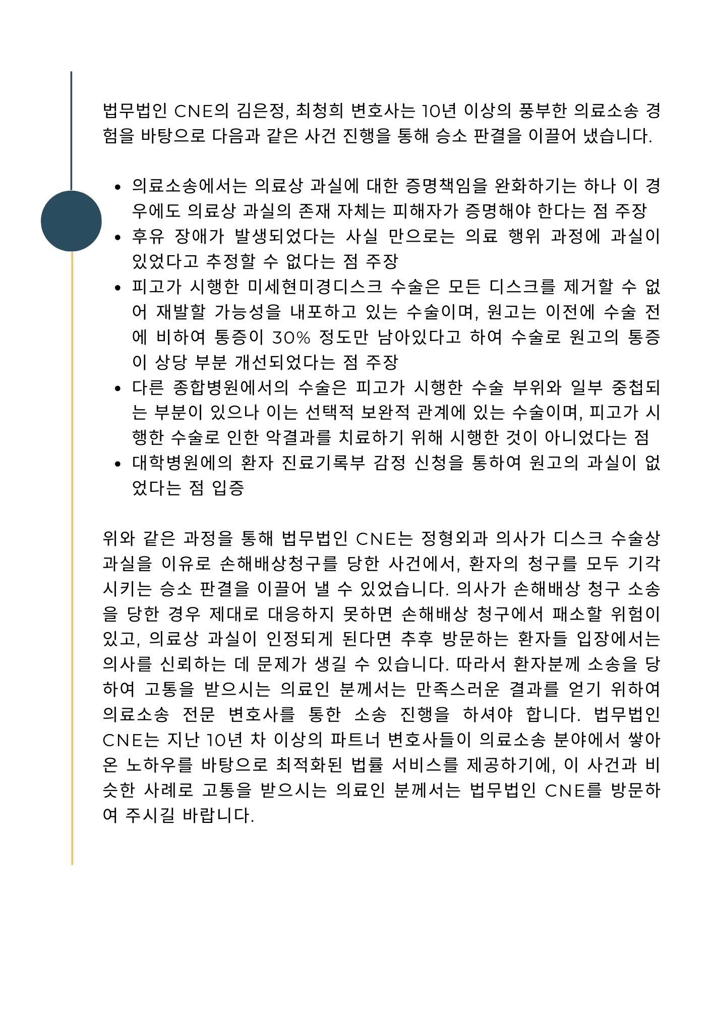 [업무사례] 정형외과 의사가 디스크 수술상 과실을 이유로 손해배상청구를 당한 사건에서 승소 판결 이끌어내