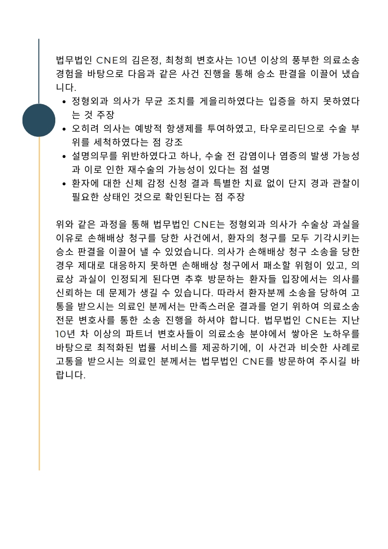 [업무사례] 정형외과 의사가 수술상 감염관리 부실을 이유로 손해배상청구를 당한 사건에서 승소 판결을 이끌어