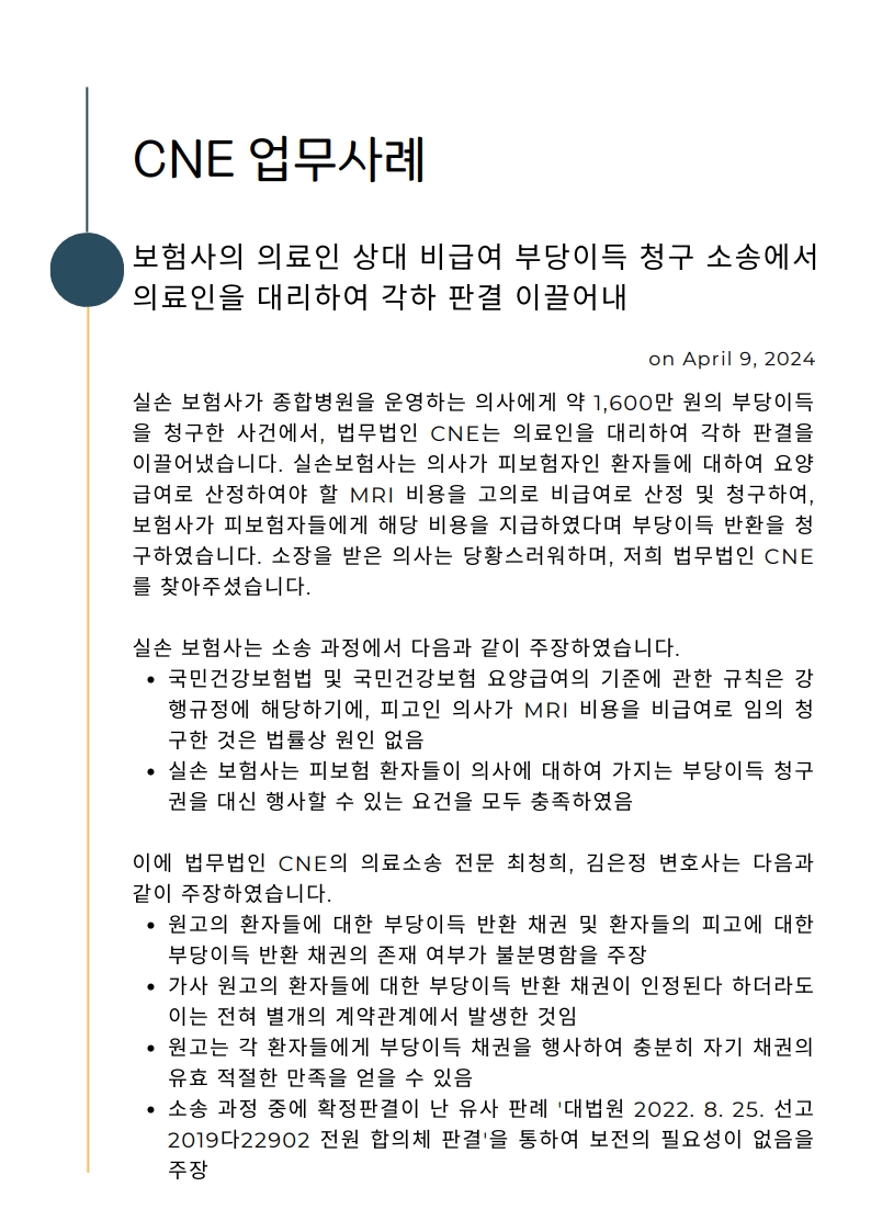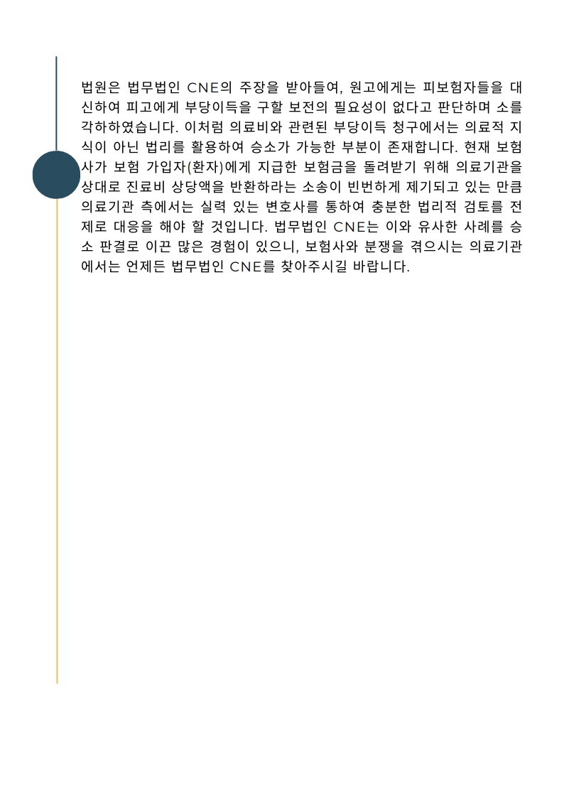 [업무사례] 보험사의 의료인 상대 비급여 부당이득 청구 소송에서 의료인을 대리하여 각하 판결 이끌어내