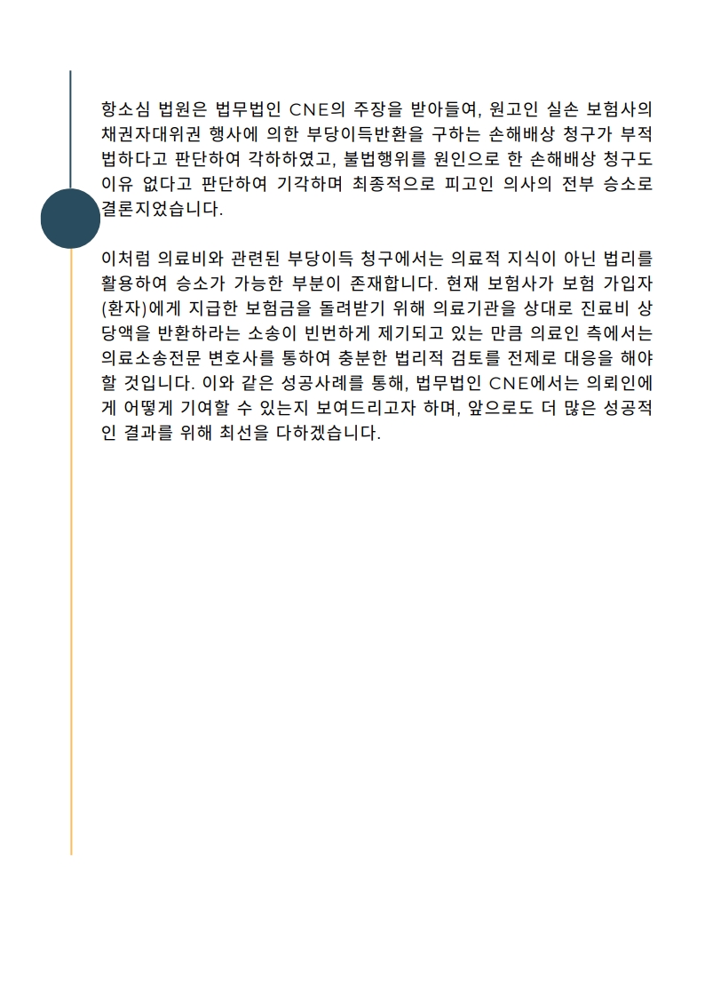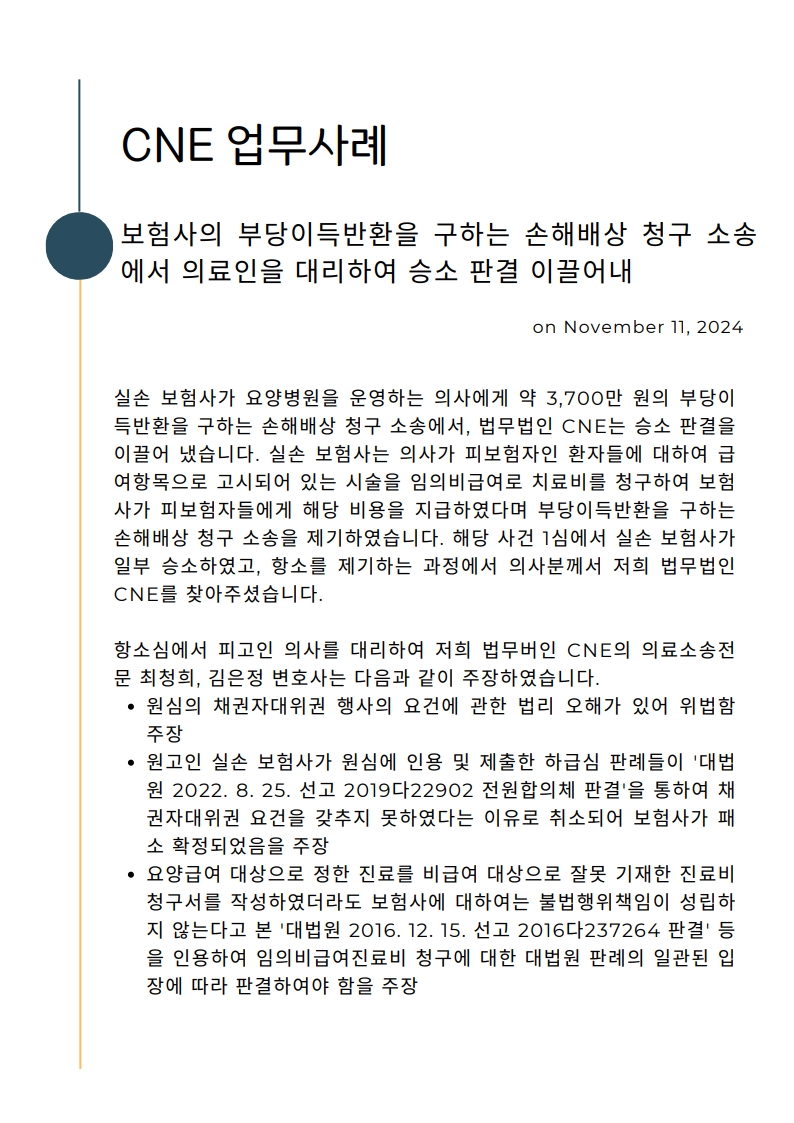 [업무사례] 보험사의 부당이득반환을 구하는 손해배상 청구 소송에서 의료인을 대리하여 승소 판결 이끌어내