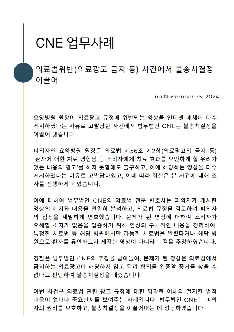 [업무사례] 의료법위반(의료광고 금지 등) 사건에서 불송치결정 이끌어