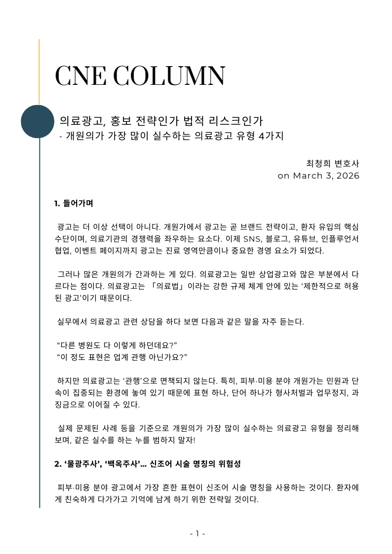 [칼럼] 의료광고, 홍보 전략인가 법적 리스크인가