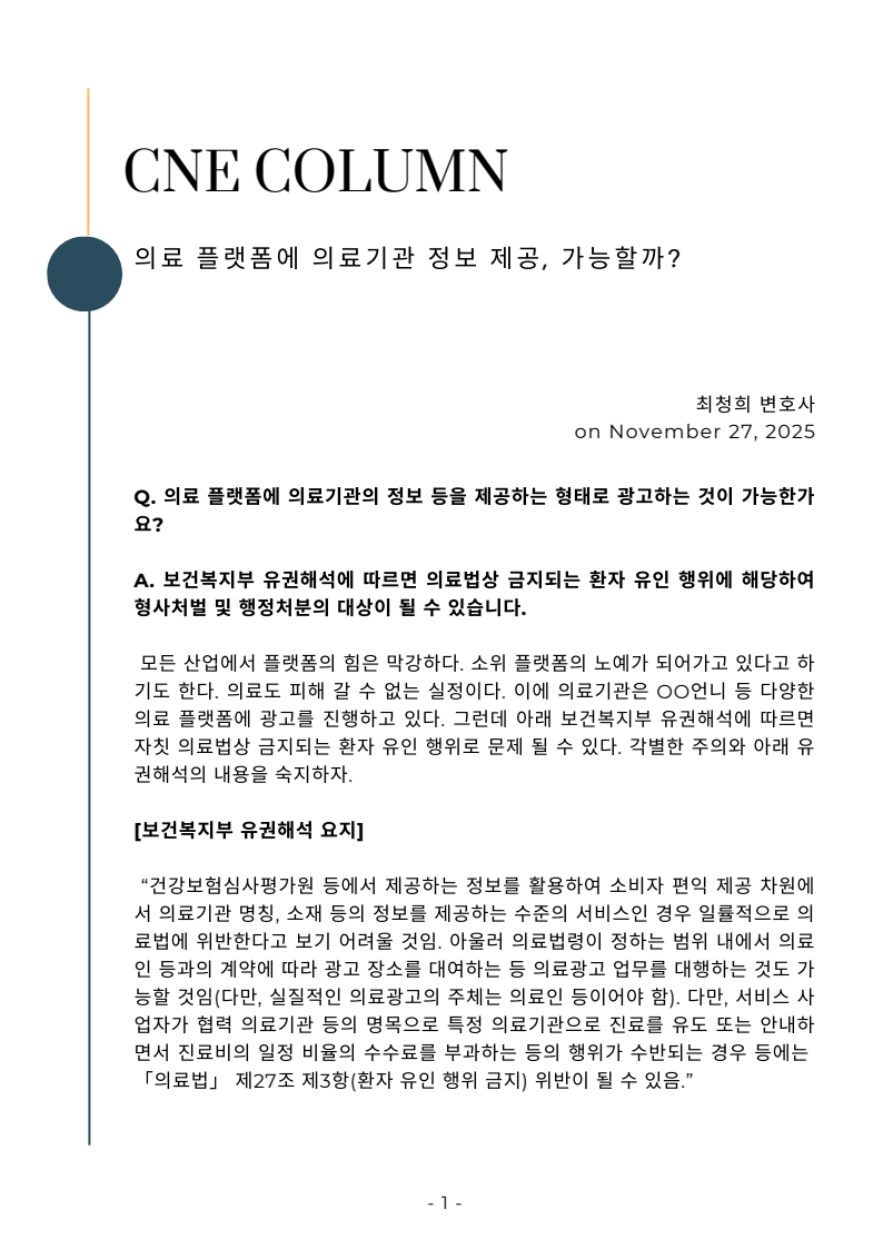 [칼럼] 의료 플랫폼에 의료기관 정보 제공, 가능할까?